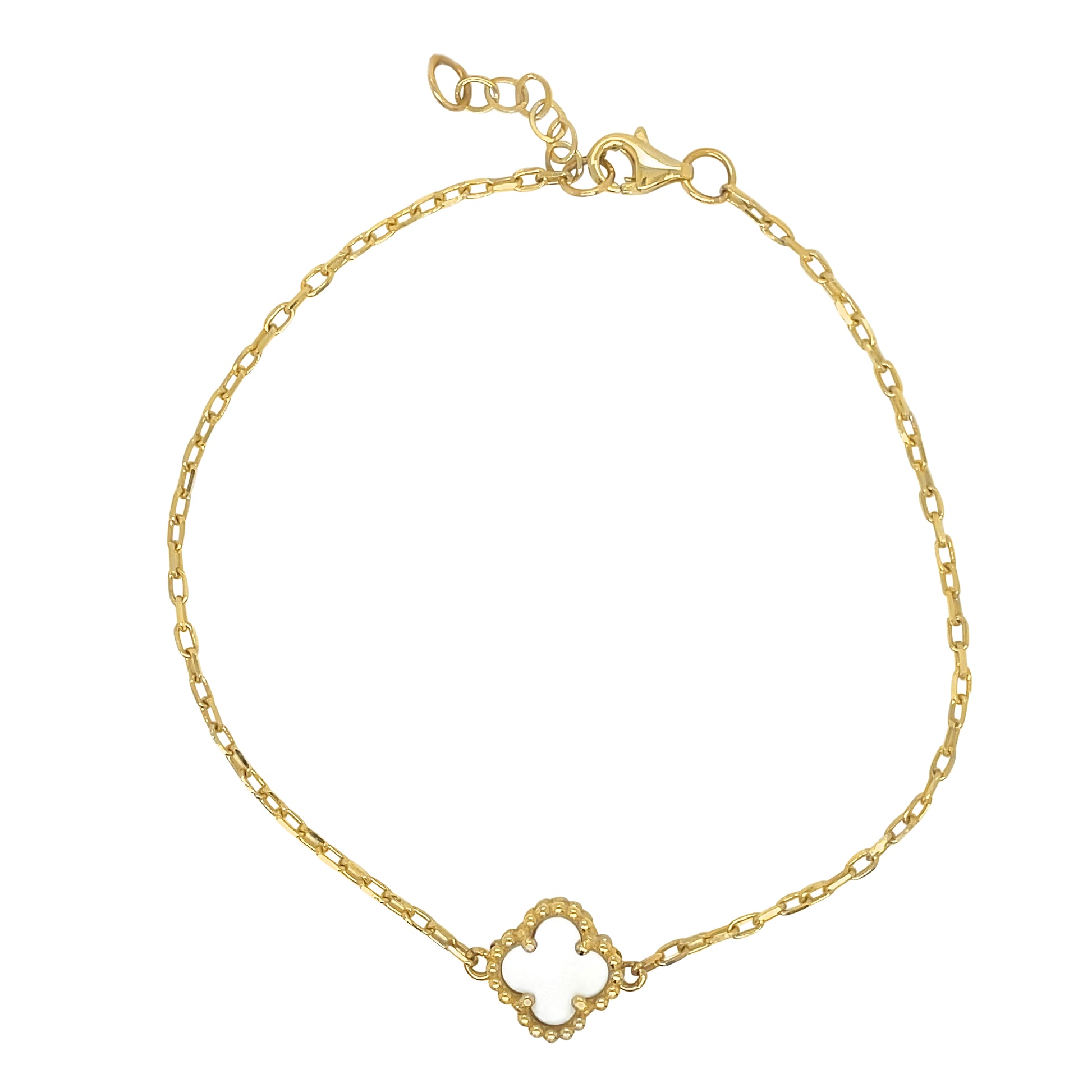 14k Gold Mother Of Pearl Single Clover Bracelet