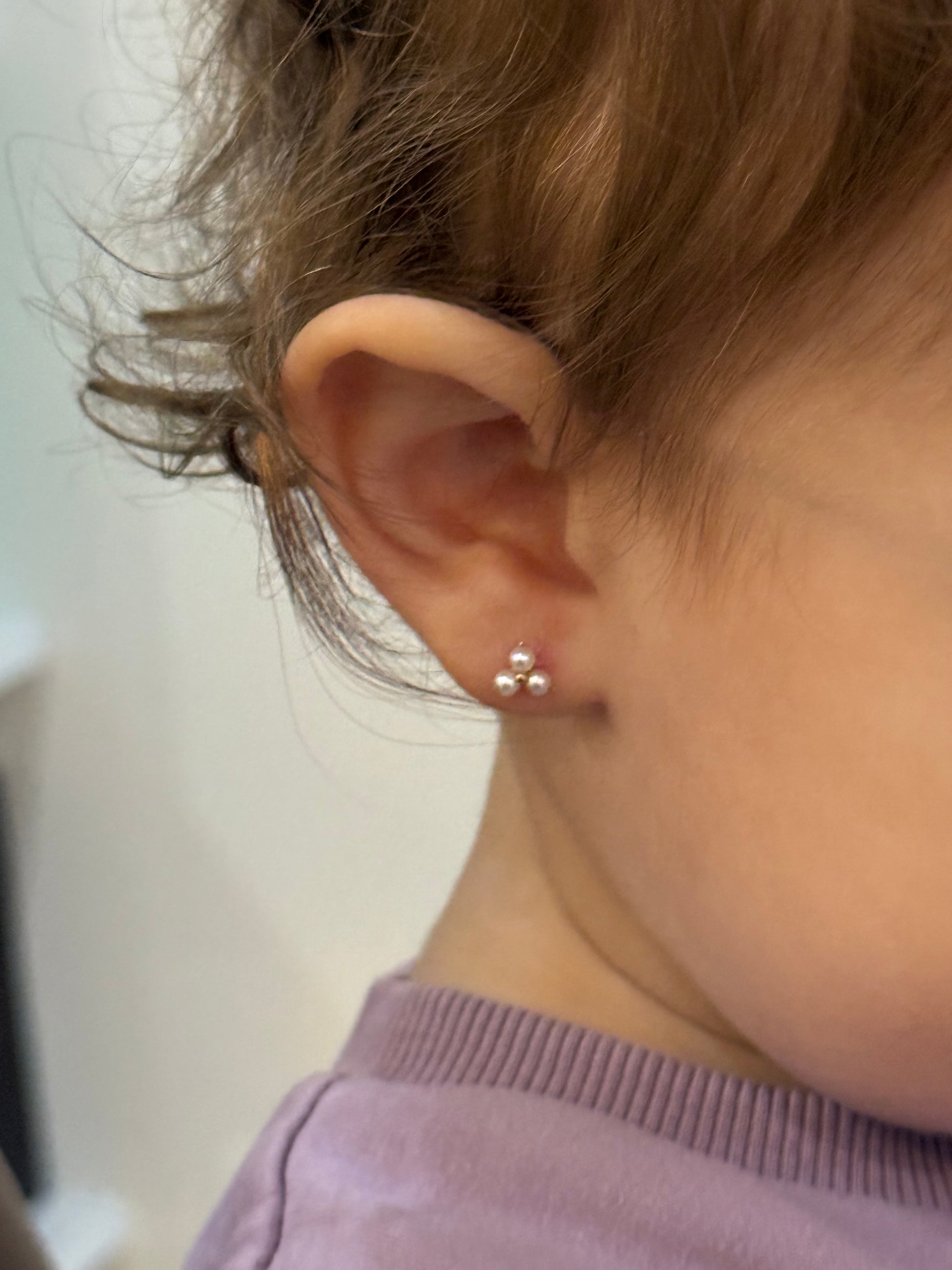 14k Gold Small Triangle Pearl Screw-back Earrings
