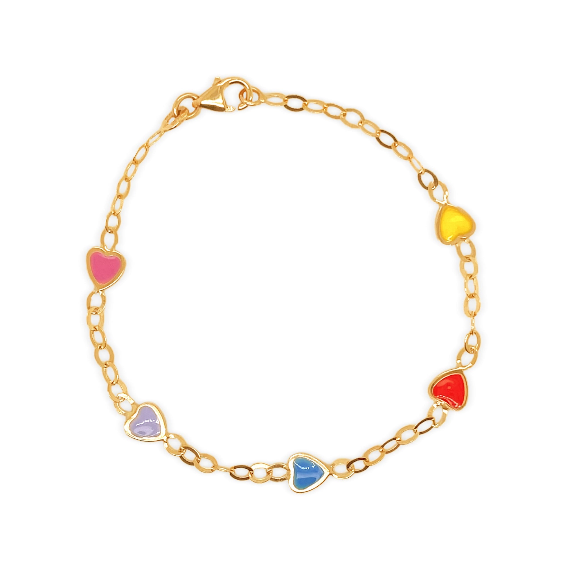 14k Rainbow Heart Enamel Bracelet