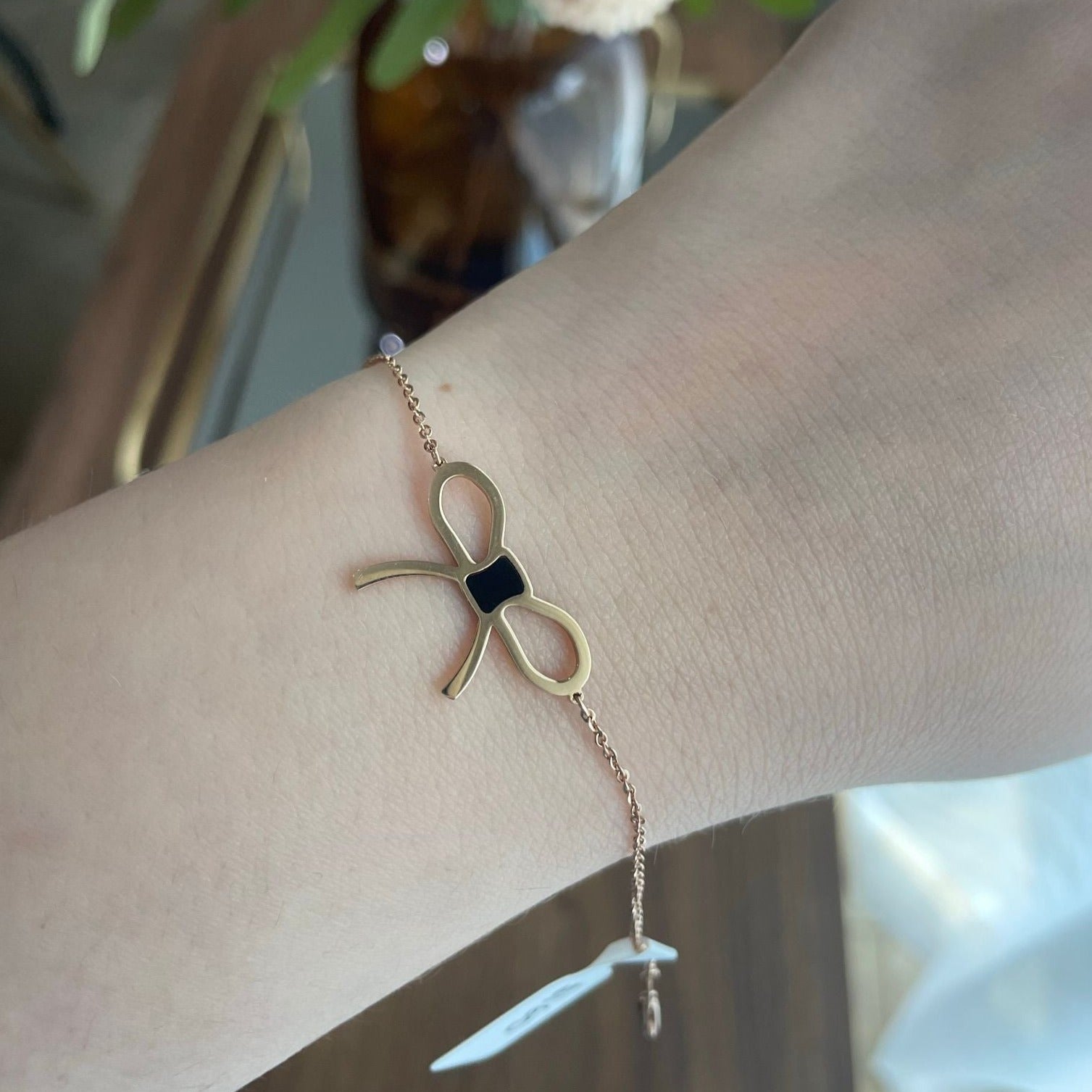 14k Rose Gold Onyx Gemstone Ribbon Bracelet