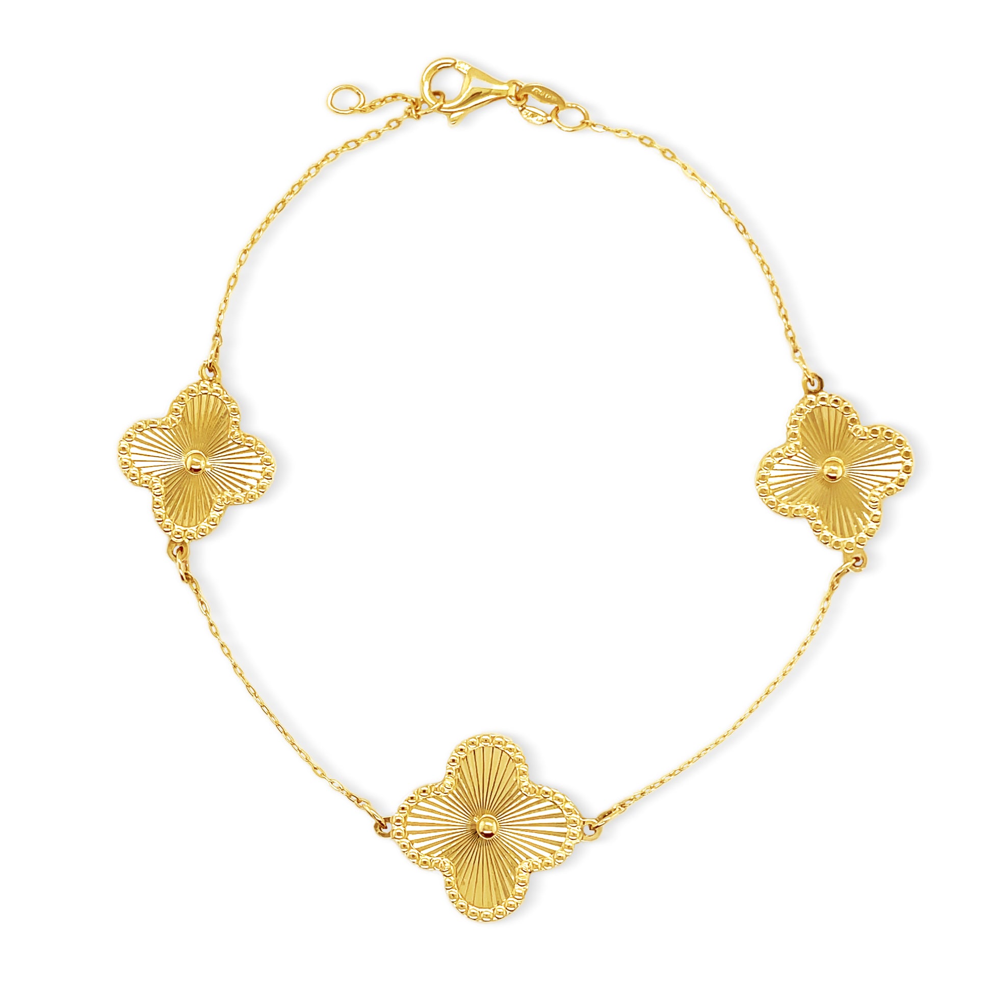 14k Textured Gold 4 Leaf Clover Bracelet
