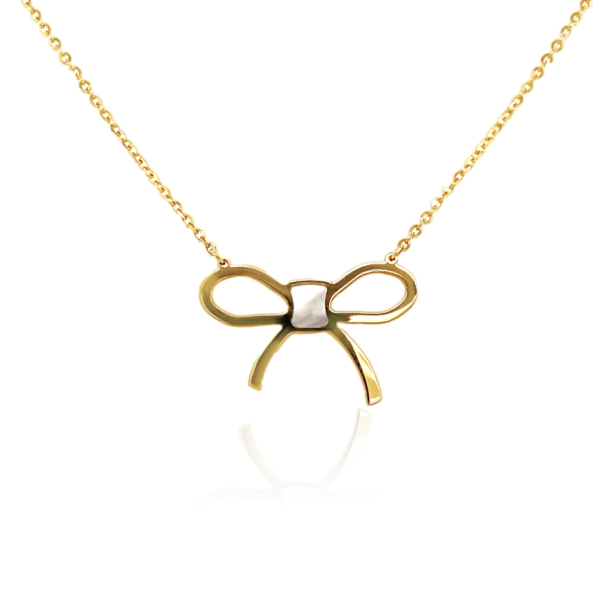 14k Yellow Gold MOP Gemstone Ribbon Necklace