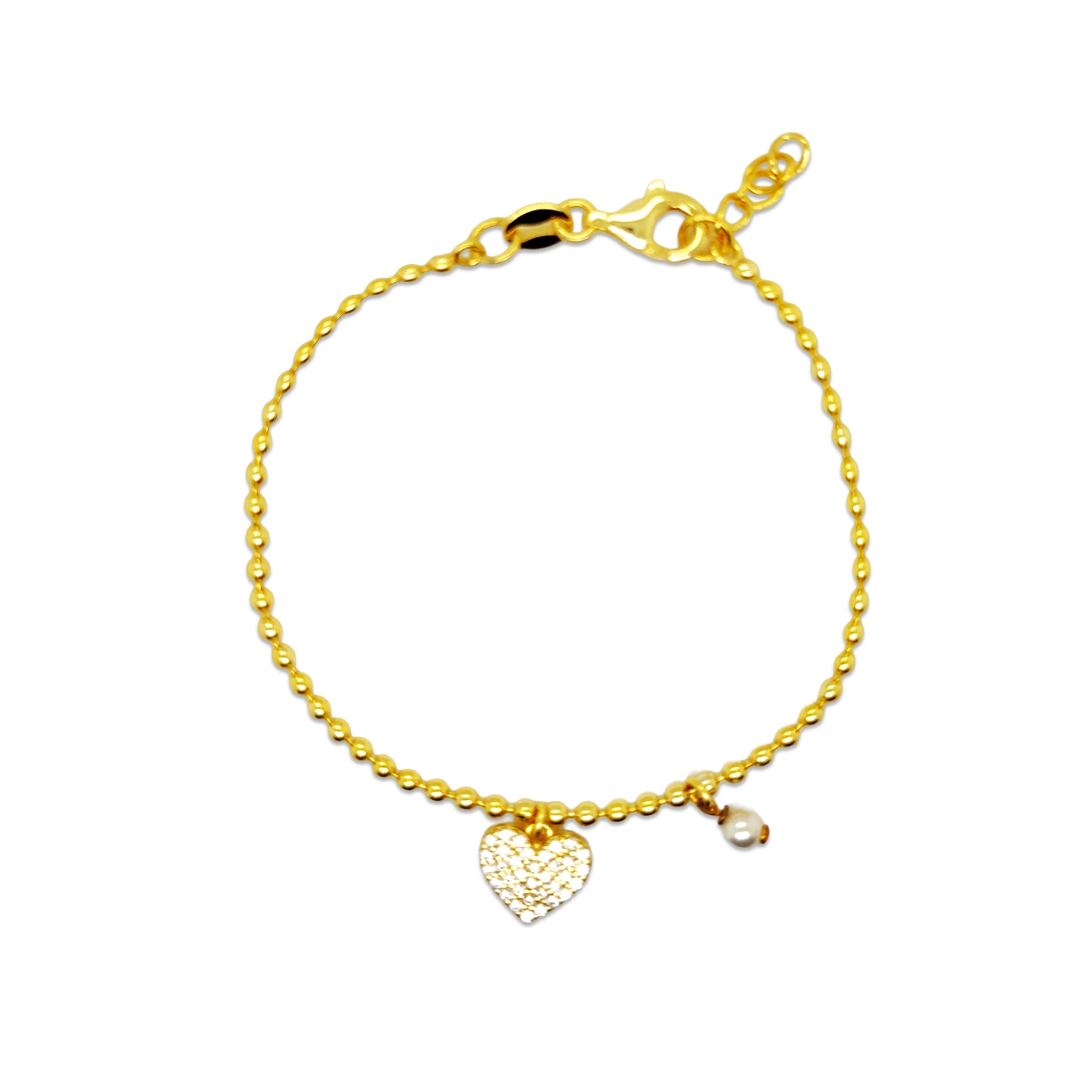 Beaded Heart Charm Bracelet 14k Gold Plated