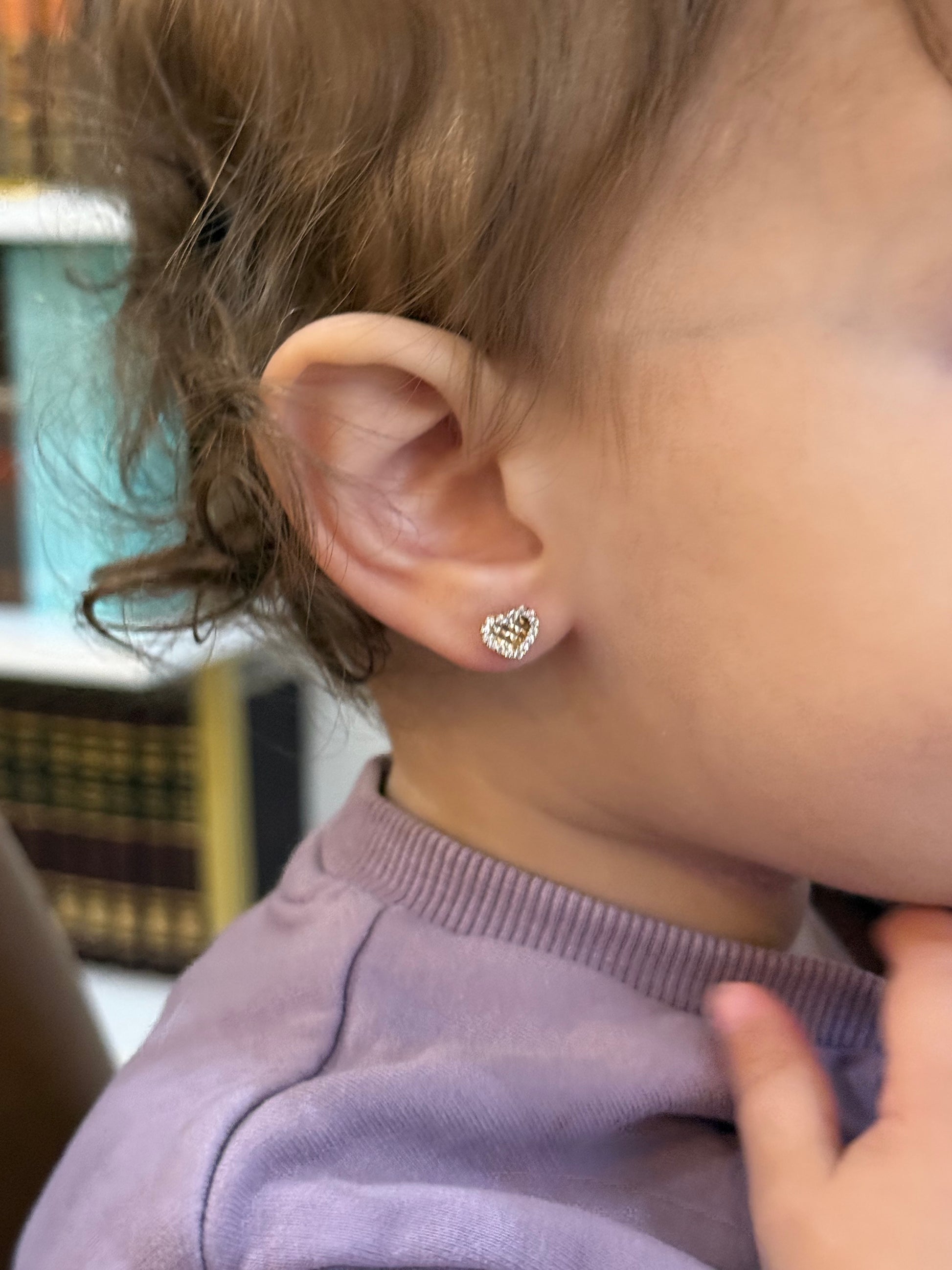 14k Diamond Cut Heart Screw-Back Earrings