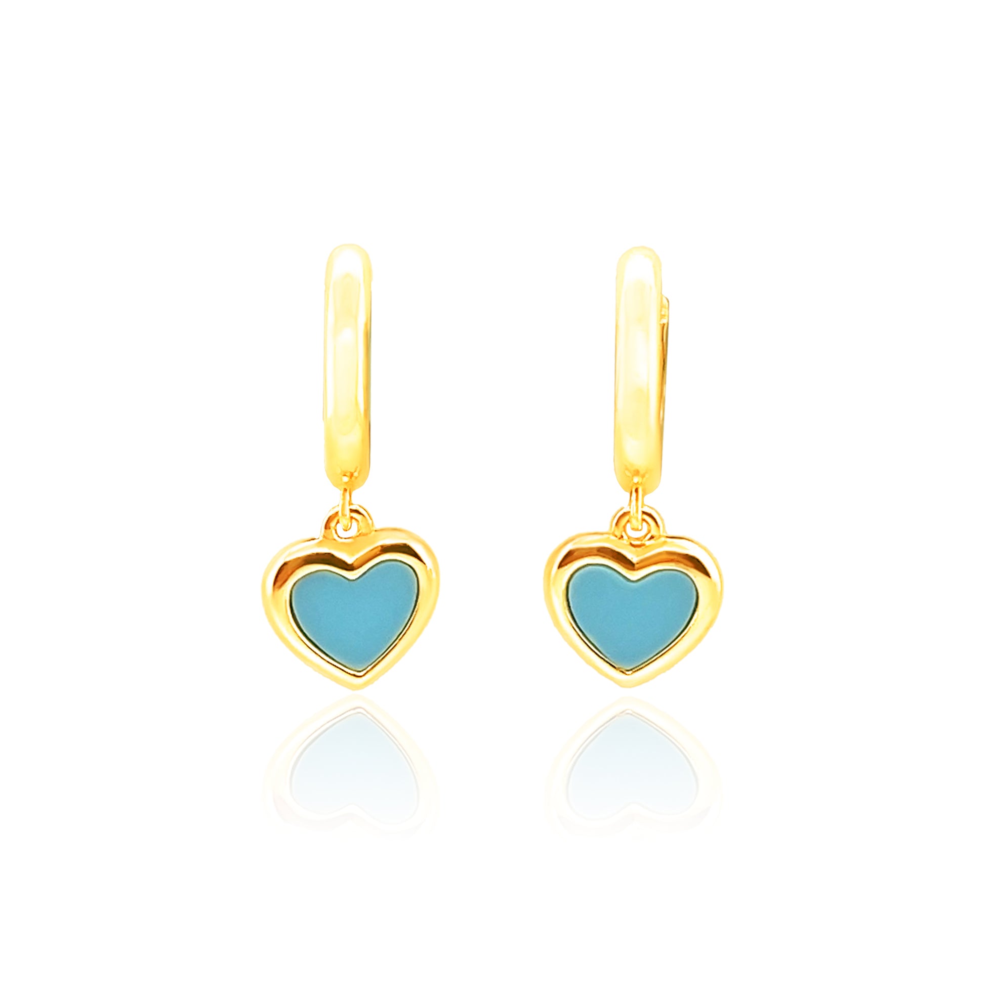Hanging Turquoise Heart Earrings 14k Gold Plated